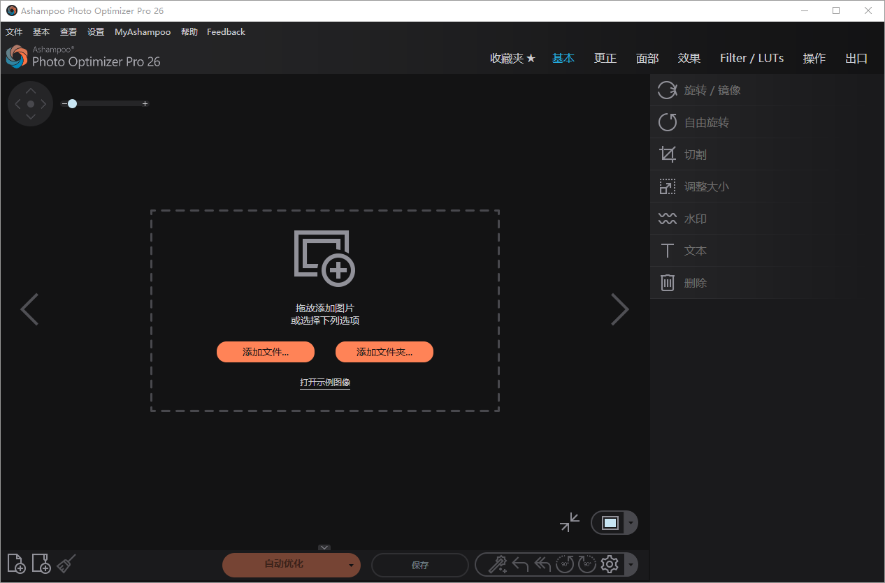显著提升图片优化效果,手动色温调整,调整色调曲线,智能白平衡,自动增强对比度,获得最佳效果,自动优化图像,插入文本或图像水印,切割,自由旋转,水平修正,镜像和旋转图像,颜色修正。